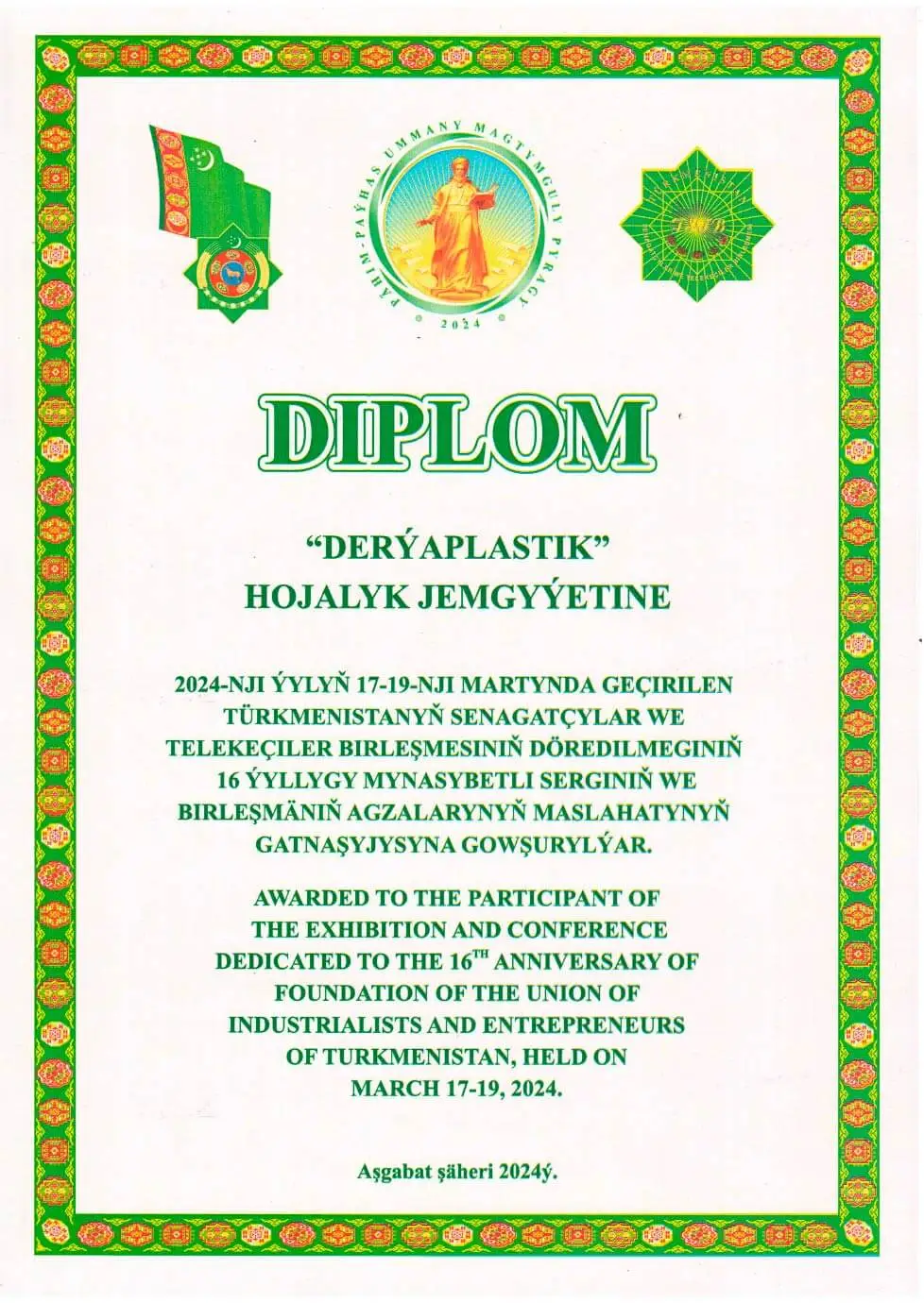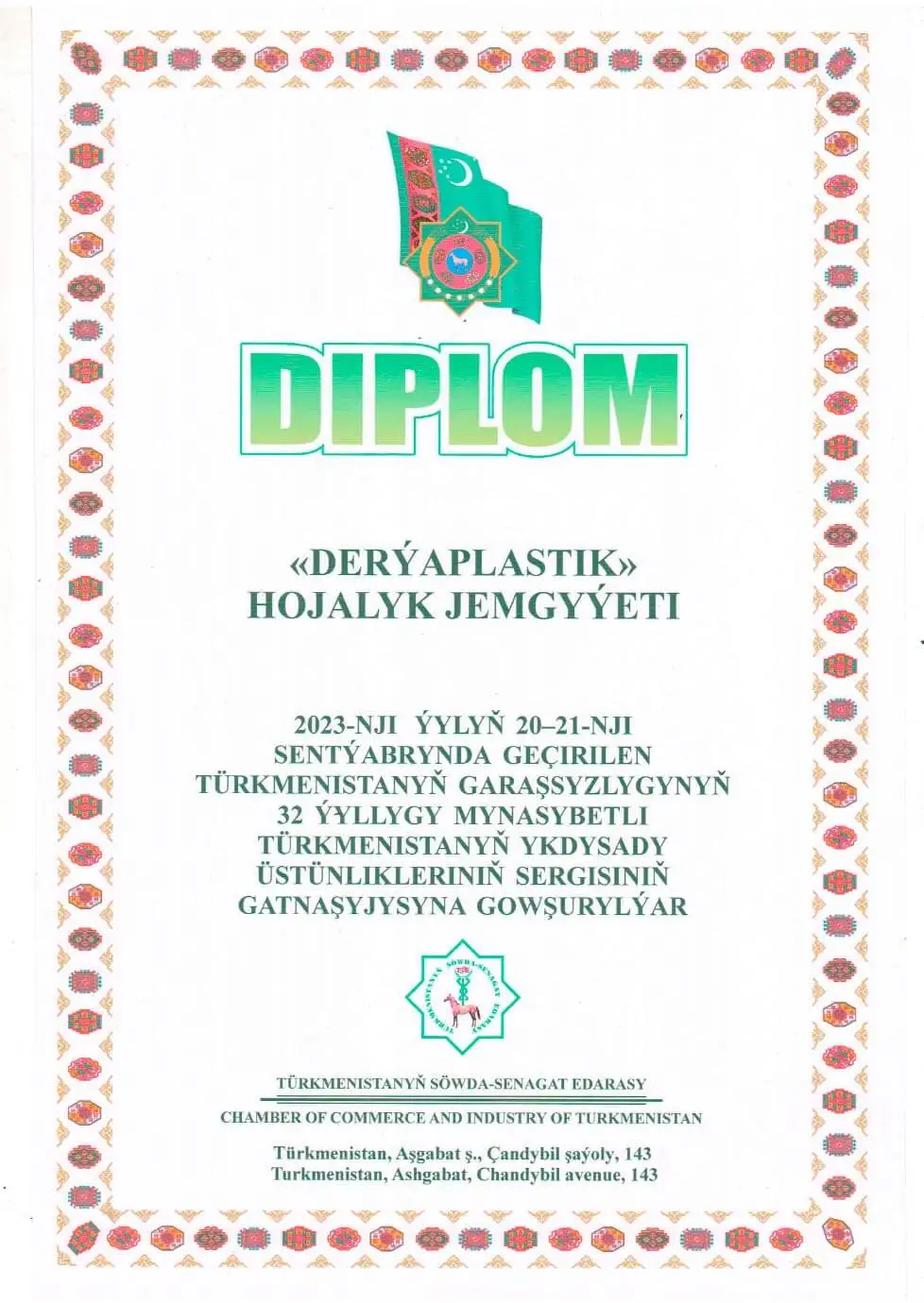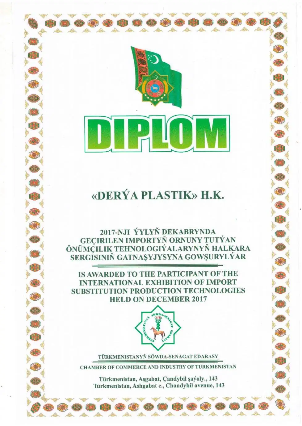 DERÝAPLASTIK is a holding company in Turkmenistan