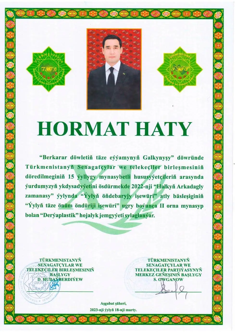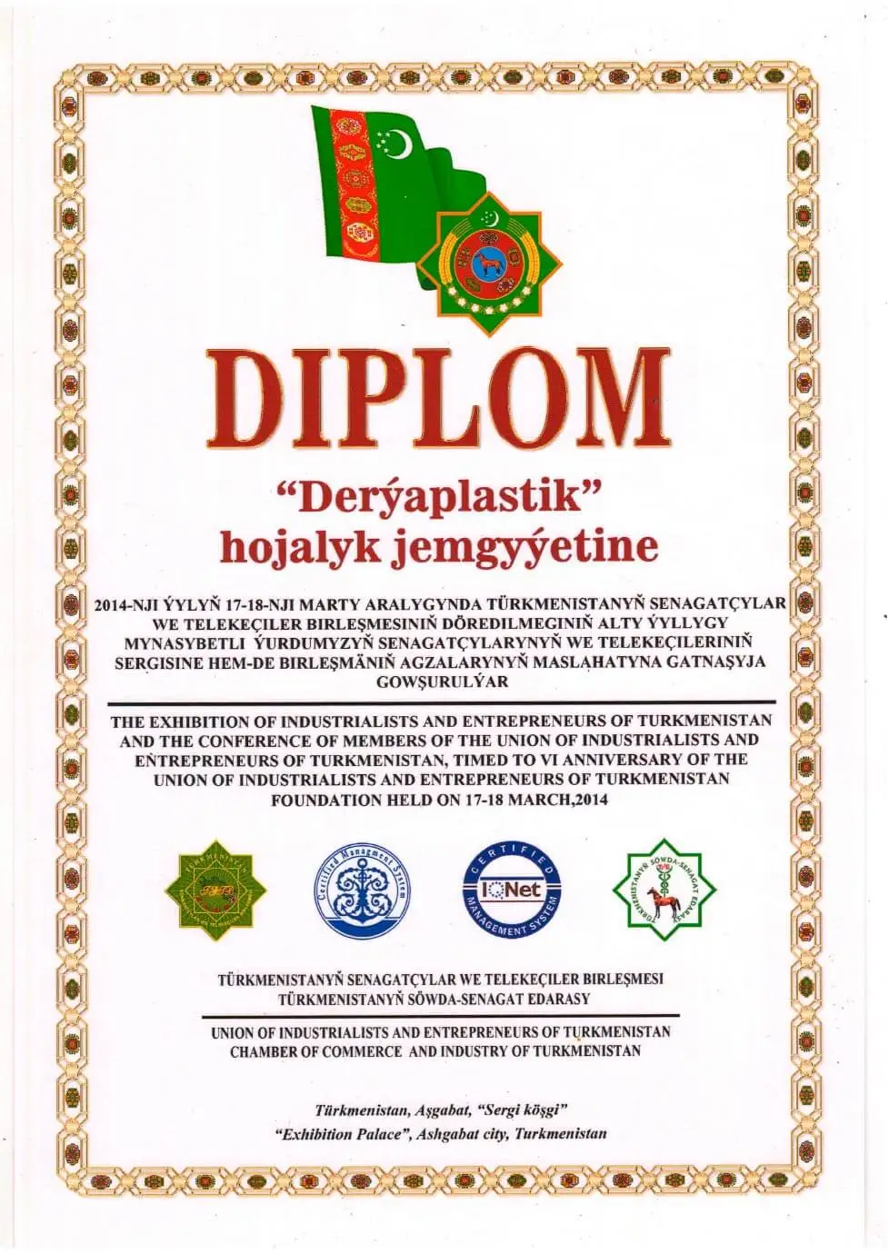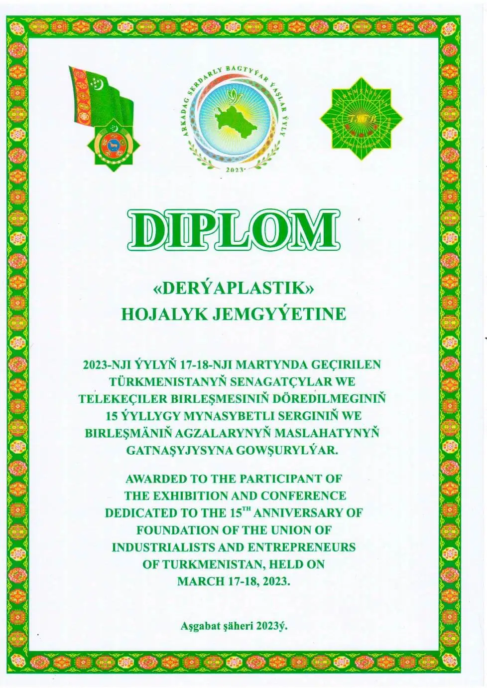 DERÝAPLASTIK is a holding company in Turkmenistan
