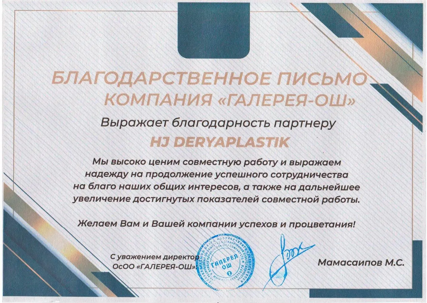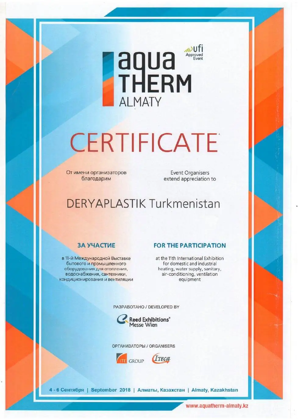 For the purposes of the policy pursued by the President of Turkmenistan to support private business, aimed at producing import-substituting and export-oriented high-quality products, “DERÝAPLASTIK” has been one of the largest production facilities since 2008, occupying a leading position in the market of Turkmenistan, supplying not only the domestic market with construction materials but also the world market.